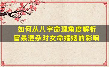 从八字命理角度看,"官"杀,混杂对女命婚姻的影 💐 响是传统命理学中较为复杂的议题需结合十神、五行生克及格局配置综合分析。以下是系统性解析: