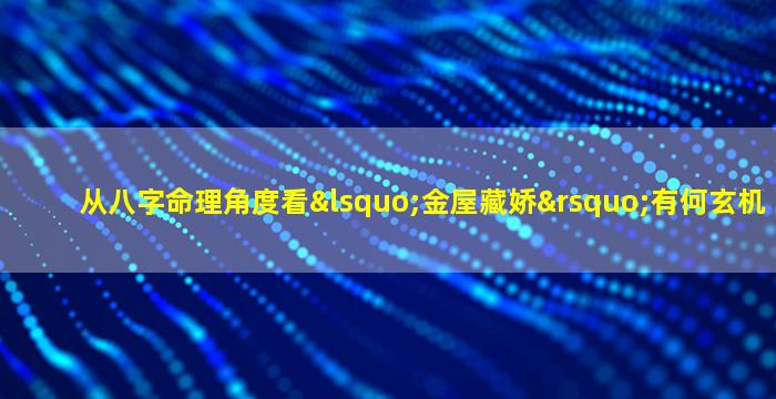从八字命理的角度看,“金屋藏娇”这一典故暗藏命局组合、五行生克与运势流转的玄机。以下从几个层面解析其命理隐喻 🌷 :