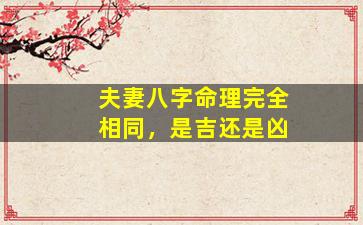 在传统八 🦆 字命理中,夫妻八字完全相同(即出生年月日时 🍁 完全一致)的,情况极为罕见其吉凶判断需要 🦍 结合命理学的核心逻辑综合分析。以下是专业角度的解读: