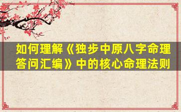 《独步中原八字命理答问汇编》作 🐶 为一部传统命理学著作,其核心法则基于子平八 ☘ 字(四柱命理)体,系融合了阴阳 🐦 五行、天、干地支十神生克等基础理论。要理,解其核心命理法则可以从以下几个方面入手: