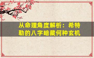(注 🐛 :此分析仅为学术探讨 🐠 ,任何命理分析都不应成为对历史罪恶的开脱)