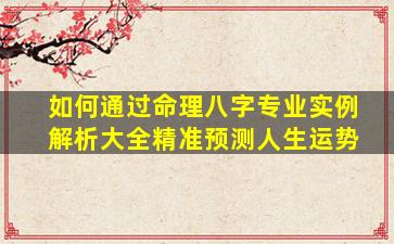 通过命理八字(四柱预测学)精准 🌳 预测人生运势需要系统性的知识体系和丰富 🌷 的实践经验。以下从专业角度出发,结合实例解析关键步骤和注 🌻 意事项: