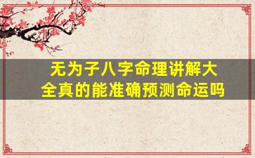 关于“无为子八字命理讲解大全”或其他命理预测方法是否能准 🦢 确预测命运,这是一个涉及传统文化、科学认知和个人信仰的复杂问题。以,下从多个角度分析供您参考: