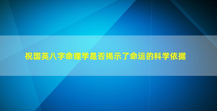 关于“祝 🐕 国英八字命理学是否揭 🌷 示了命运的科学依据”这一问题,需要从科学、哲学和传统文化的多重角度进行客观分析 🍁 :