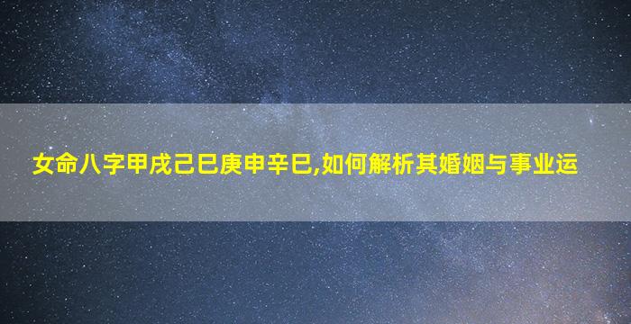 以下是对女命八字 甲 戌 己 巳 庚申辛巳的婚姻与事业解析 🐎 ,基于传统子平理论: