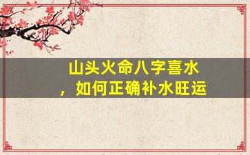 根据八 🌳 字命理中的“山头火命”喜水的特点,补水,旺运需从五行平衡的角度出发结 🦉 合生活习惯、环境调整和命理 🐧 布局等多方面进行。以下是具体建议: