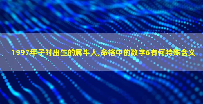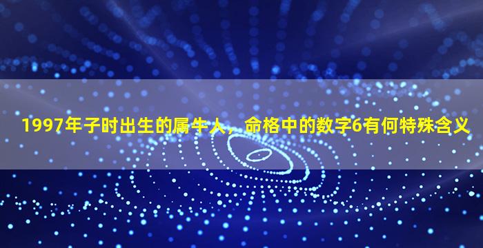 在中国传 🐈 统命理学中,数字与五行、八,卦等理论相结合常被用来分析个人运 🐟 势。对于1997年(农历丁丑年)子,时出生的属牛人数字在 🦈 命“6”格中的含义可从以下几个方面理解:
