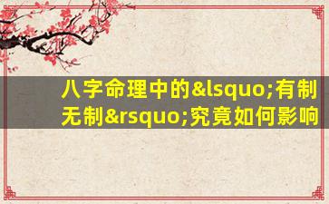 在八字命理中,“有制无制 🐘 ”是,判断五行生克平衡与命局层次的关键概念直 💐 接影响命运格局的吉凶成败。以下从原理、表 🦅 现及实际影响三个方面深入解析: