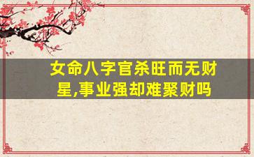 在八字命理中,女命,官杀旺而无财星确实可能呈现出事业能力强但聚财困难的特点但具 🍁 体还需结合整体命局和 💐 五行生克关系综合分析。以下是关键点解析: