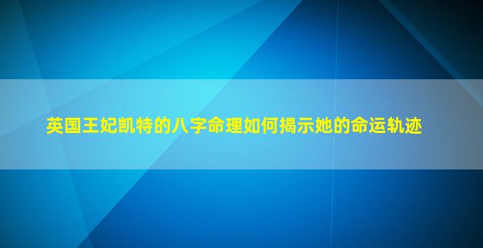 关于英国王妃凯特的八字命理分析,需明确 🦄 以 🐟 下几点 🦟 :