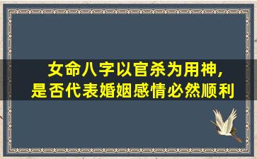在八字命理中,"女命"以,官杀为用神并不意味着婚姻感情必然顺利而是表示命局中代表丈夫感情、关系的官杀星 🍁 (正官、七杀)对命主有积极的调和作用。但婚姻的顺利与否还需结合以下因素综合分析:
