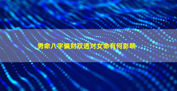 在八字命理中,“男 🐕 命偏财双透”对,女命的影响需要结合双方八字整体格局来分析但可以一些传 🐺 统命理的常见观点供参考: