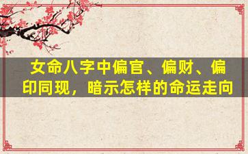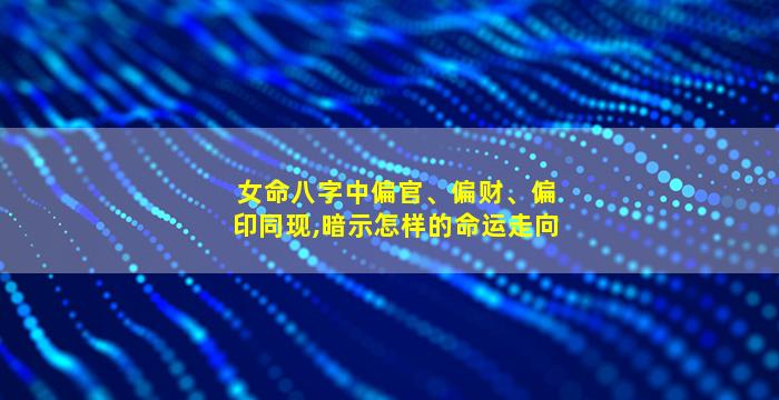 在八字命理中,偏官(七杀偏)、财偏、印(枭)神,同,现于女命确实会形成一种特殊的命局组合其命运 🐱 走向 🌿 需结合十神特性和 🐎 五行生克综合分析。以下是可能的暗示和解读方向: