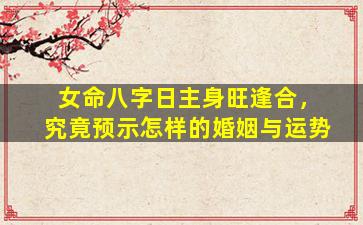 在中国传统命理学中,八字(四柱)分,析是一个复杂体系需结 🐦 合全局五行生克、十神配置等综合判断。关于"女命"日,主,身旺逢合的婚姻与运势以下为一般性解读框架但需注意具体命局需专业分析: