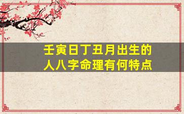根据八字命理学,壬寅日丁丑月出生的人(需结合具体年份和时辰 🐧 才构成完整八字),其 ☘ 命理特点可从日柱和月柱的关系 💮 进行基础分析: