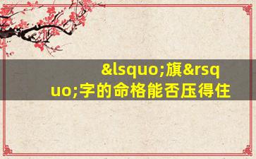 在传统命理学(如八字、姓名学)中,判断一个字是否能“压得住命”格,通、常、需结合个人生辰八 🐶 字五 🐧 行喜忌字形字义等多方面综合分析。针“对”旗字,以,下是一些常见的分析角度供参考: