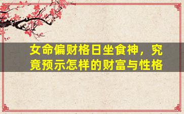 在中国传统命理学中,偏财格与日坐食神的组合对于女性命主的财富和性格确实有特殊解读,以下是综合分析: