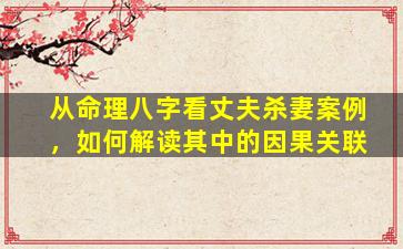 从命理八字的角度分析极端事件如“丈夫杀妻”,需要谨慎且理性对待。命理学的核心是探讨个人性格、行为模式与命运趋势的关联性,而非直接预测或合理化犯罪行为。任何暴力行为都涉及复杂的社会、心理、法律因素,八字仅能作为传统文化中的一种观察视角,不可过度解读或成为开脱罪责的工具。以下从命理逻辑提供一种可能的分析框架,但需注意以下几点前提: