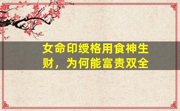 在八字命理中,“女命印绶格用食神生财”能,富贵 🦊 双全需结合格局配置、五,行生克及十神特性来分 🐴 析其原理如下: