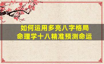 “多亮八字格局命理学”是命理研究中的一种流派观点,强调通过八字(四柱的)组合格局来精准分析命运趋 🦍 势。以,下,为基于传统命理学框架的十八个核心预测要点结合多亮流派的部分思路整理而成供参考: