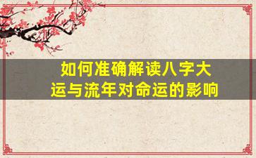 解读八字大运与流年对命运的影响,是命,理学中的核心内容需结合天干地支、五、行生克十神 🐳 关系等多维度综合分析。以下是系统性的解读方法: