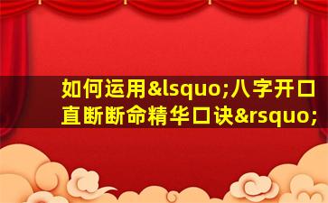 运用“八字开口直断断命精华口诀”进行快速推断,需结合八字命理的核心逻辑与口诀的提炼技巧。以下 🌳 是具体方法和 🌷 步骤: