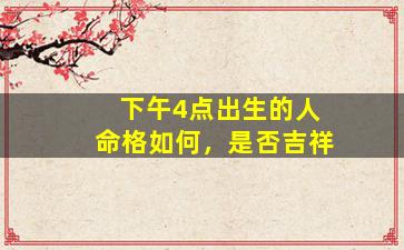 在中国传统命理学中,出,生时辰对人的命运有一定影响 🍁 但命格吉凶需结合完整的生辰八字(年、月、日时、以)及、五、行,生克十神大运等综合分析单一时辰并不能直接断定命运好坏以。下是针对下“午4点”(申时的 🐝 )简,要分析供参考: