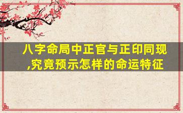 官印同现命局如同“持玺授印”,预,示正统 🐋 成就之路但需结合全局判断其能量是否得用。此,配“置”者。若能守正修德往往能成就稳中求贵的人生