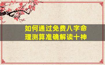 通过免费八字命理测算准确解读“十神 🦋 ”,需要掌 🐼 握基础命理知识并结合系统分析。以下是具体步骤和 🐒 注意事项: