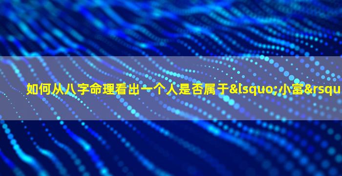 在八字命理中,判断一 🦋 个人是否属于“小富”格,局需要综合分析命局中的财星、食、伤、官,杀印星等要素的配合以及五行生克和十神之间的平衡以。下是具体的分析思路和关键点: