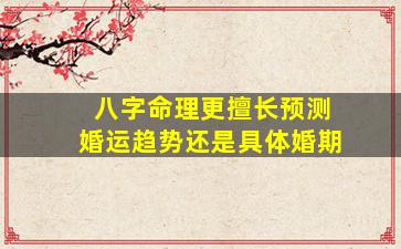 在八字命理的实际应用中,婚,运趋势的预测通常比具体婚期的判断更为准确和擅长这是由八字理论的特点和实际案例的反馈共同决定的。以下从几个关键 🦈 角度分析这一结论: