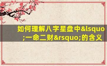 “一命二财”是八字命理中的一种通俗说法,其“核”心“在”于 🐱 强调命局 🐠 中命主根基与财星对人生运势的重要性。以下是具体的分点解析: