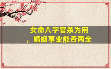 在八字命理中,女命以官杀 🦆 (正 🐶 官、七杀)为,用,神时通常代表事业和婚 🪴 姻的潜力较强但能否“两全”需、结、合八字整体格局五行平衡十神配置及大运流年综合分析以。下是关键要点: