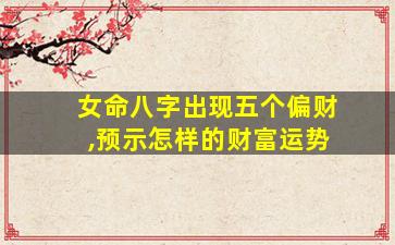 在八字命理中,偏财代表意外之财、投、机,性收入副业收益或非稳定财富女性命局中出现五个偏财(需,确,认是否真的达到五个因八字仅四柱共八个字可能包含地支藏干或 🍀 重复出现),其财富运势需结合以 🌳 下因素综合判断: