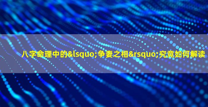 在八字命理中,“争妻之相”是,一,种民间通俗说法并非专业术语通常指 🌴 男性命盘中可能出现婚姻竞争、感情纠纷或配偶易受他人影响的配置。其“核心逻辑与命理中的比劫争财妻”“星”受 🐞 ,克。等理论相关需结合具体 🌼 命盘分析以下是专业角度的解读要点: