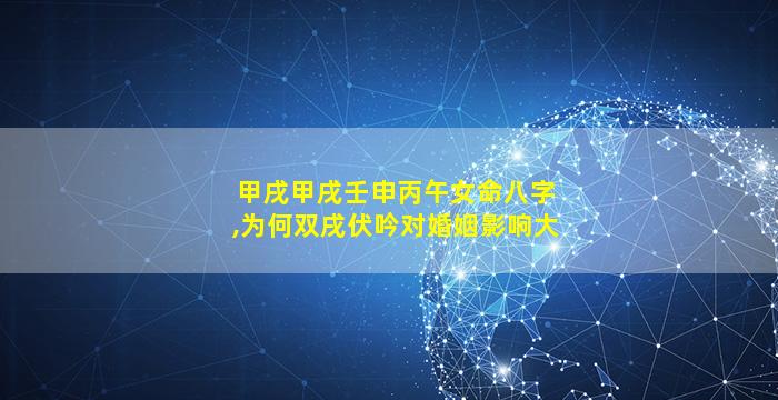 在八 🌹 字命理中,双,戌伏吟对婚姻 🐡 的影响主要通过以下几个层面体现结合您提供的女命 🌵 八字(甲戌甲戌 壬 申 丙午)具体分析如下: