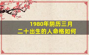 根据中国传统的生辰八字命理分析,1980年阴历三月二十(公1980历年月5日 🌹 4出 🐅 生的)人命格推算如下: