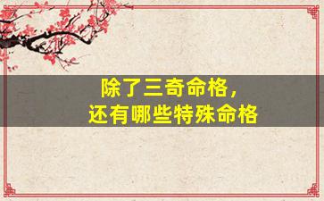 在中国传统命理学中,除了“三奇贵人命”格,外还有许多其他特殊命格(或“称为格局”),这(些命格)通常基于八字四柱中天干地支的独特组合、五行生克关系以及神煞的配合而形成以。下是一些常见 🕷 的特殊命格分类及举例:
