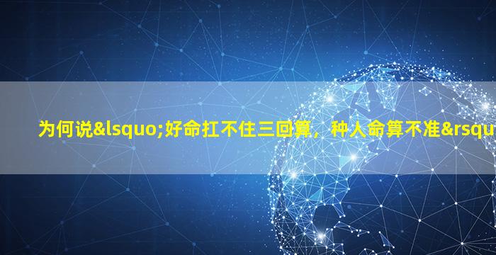 从科学角 🐘 度看,算命是一种概率游戏和心理暗示。人的命运受先天条件、社、会,环境个人选择等多因素影响而算"不 ☘ "准恰恰说明生命的复杂性和可能性——这或许是这句俗语最积极的启示:与,其。纠结命理不如专注当下
