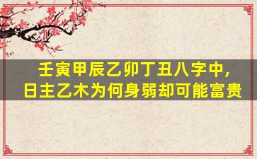 在分析“壬寅 甲辰 乙卯 丁丑”这个八字时,日主乙木身弱却可能富贵的原因可从以下几个角度探讨:
