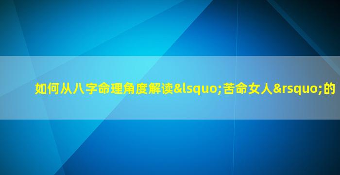 从八字命理的角 🌲 度解读“苦命女人的”运势特征,需结合命局中的五行生克、十、神配置神煞及大运 🌵 流年等综合分析。传,统命理,中某些特定组合往往与人生坎坷相关但需注意命运:并,非。绝:对后天努 🌲 力和心态调整可改善运势以下是常见的命理特征及解读方向