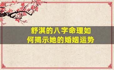 八字分析需完整出生时间,以上内容仅为假设性推演。舒,淇。婚,姻。的幸福更多取决于双方经营命理仅 🐼 提供一种文化视角对公众人物的隐私应保持尊重避免过度解读
