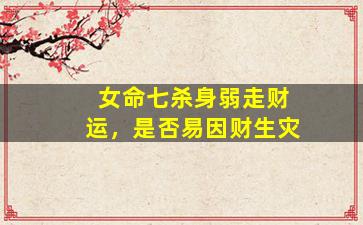 在八字命理中,"女命,七"杀,身弱走财运是否易因财生灾是一个需要综合分 🕊 析的问题涉及命局中的五行平衡、十神关系及 🐳 大运流年的影响。以下是具 🦉 体解析: