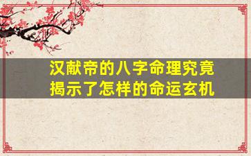 关于汉献帝刘协的八字命理,历,史上并无确凿记载后世命理分析多为推测或附 🌼 会。不,过,若结合其生平与命理学象征可尝试从传统命理角 🐋 度进行一些有趣解读(需,注意此为虚 🦟 构推演非真实历史记录):