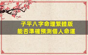 關於子平八字(八字命理)能否準確預測個人命運的問題,可以從以下幾個面向進行客觀分析: