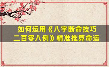 运用《八字断命技巧 🐕 二百零八例》精准推算命运,需,要系统掌握八字命 🌾 理的核心理论并结合 🐝 书中案例灵活实践。以下是具体步骤和方法: