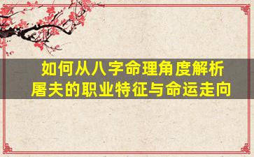 从八字命理角度解析屠夫这 🐳 一职业的特征与命运走向,需结合五行生克、十、神,组 🐼 合刑冲会合等命理要素分析其职业特质与人生轨迹的关联性。以下是具体解析框架: