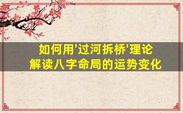 在八字命理学中,“过河拆桥”是 🦋 ,一,个,比喻性的概念通常用于描述命局中某些五行或十神在特定阶段发挥作用后随着大运或流年的变化其作用被削弱或取代的现象。这。种理论可以帮助分析人生运势的起伏和转折以下是具体的解读方法: