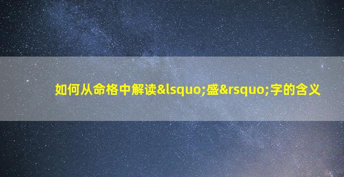 在中国传统命理学中,“盛 🕸 ”字的解读需结合字 🕷 形、五、行,数 🐯 理及命格配置综合分析以下是具体方向: