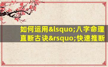 运用“八字命理直断古诀”快速推 🐱 断人生运势,需 🐎 要结合传统命理学的核心理论和口诀的实践技巧。以下是具体方法和 🌼 步骤: